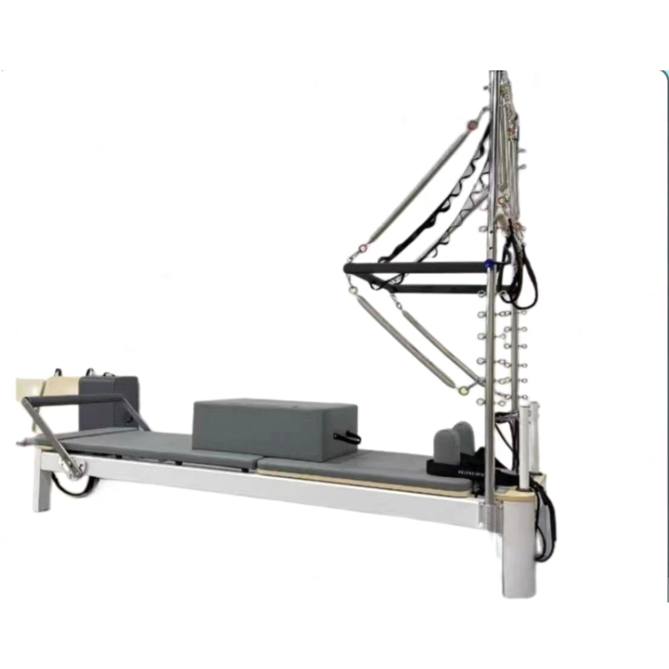 There are hundreds of practice movements in the recombination trainer, all evolved from Pilates on the mat, emphasizing the coordination of movements and breathing, the precision of movements, the smoothness of movements, and so on.